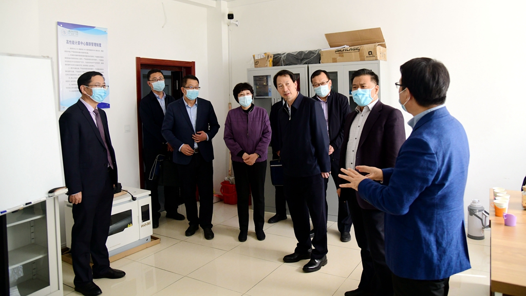 本网讯 4月19日下午,自治区科技厅党组书记冯家举,党组成员、副厅长刘爽一行来pp电子调研内蒙古自治区应用数学中心建设情况。党委副书记、校长李树林,党委委员、副校长宫箭及有关部门、学院负责同志参加调研。