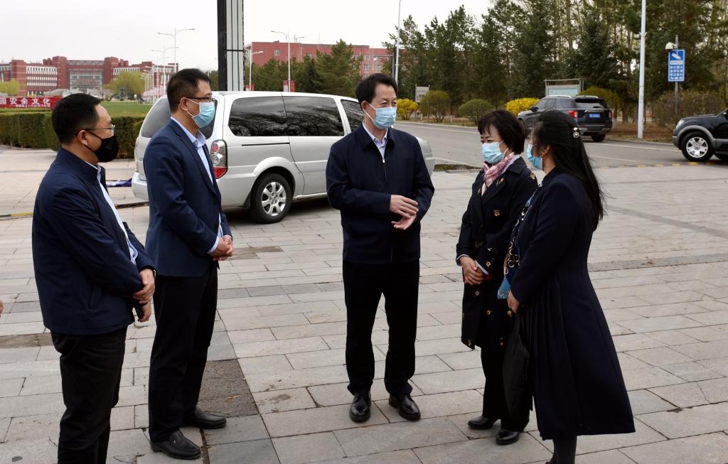 本网讯 4月20日下午,呼和浩特市委常委、统战部部长葛智敏,呼和浩特市疾病预防控制中心食品与饮用水卫生所所长王红霞 ,赛罕区疾控中心主任梁利宝,和林格尔县疾控中心副主任赵霞一行来校调研指导疫情防控工作。党委副书记、校长李树林,党委委员、副校长宫箭及相关部门负责同志陪同调研。