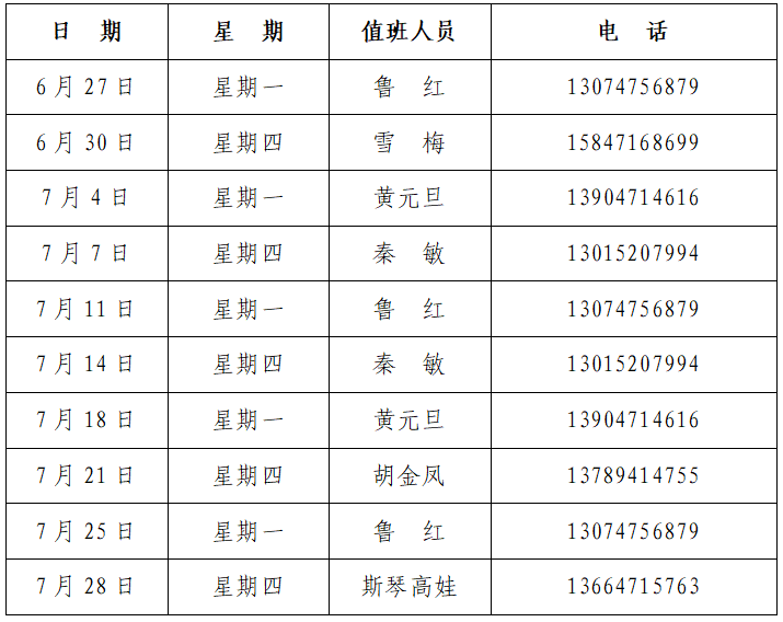 注:值班时间:上午9:00—12:00,下午1:30—16:30。