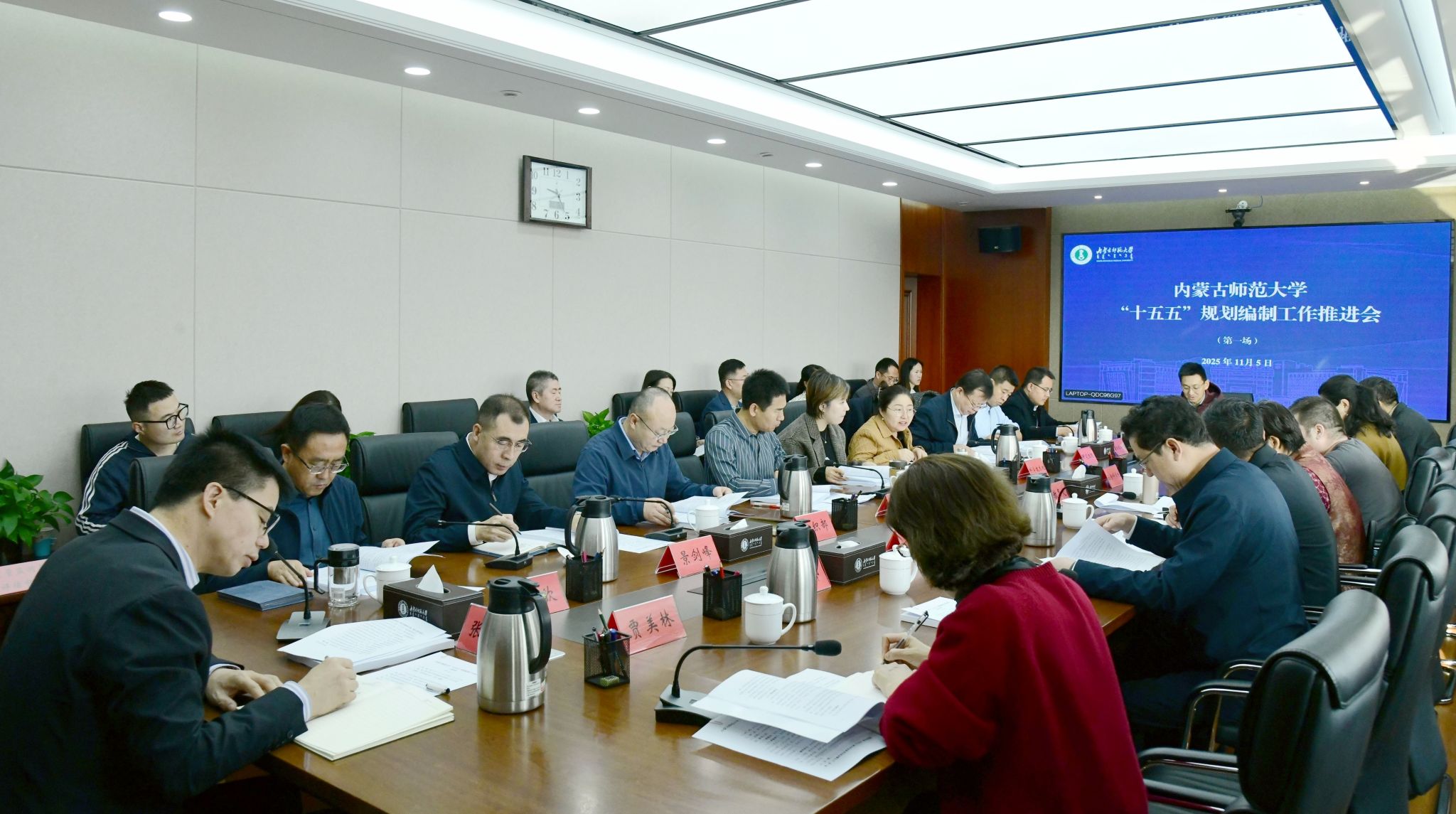 本网讯 11月5日至6日,学校在赛罕校区田家炳书院楼715会议室分两场召开“十五五”规划编制工作推进会。党委副书记、校长张军主持会议并讲话。党委副书记斯钦,副校长贾美林,党委委员、副校长公茂果、景剑峰,相关部门、各学院负责同志出席会议。